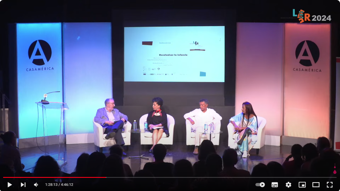 Decolonizar la infancia Mario Lúcio (Músico, escritor, pintor y exministro de Cultura, Cabo Verde) Estercilia Simanca Pushaina (Escritora, abogada, premio principal en la 1ª Bienal Continental de Arte Indígena Contemporáneo, Colombia) Neide Almeida (Escritora, investigadora, socióloga y gestora cultural, Brasil) Coordina José Castilho (Castilho consultores, Brasil) |